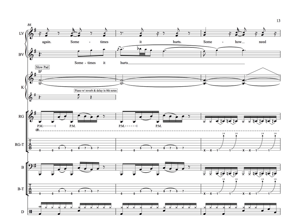Full Score that includes a detailed transcription of all Vocals, Guitars, Bass, Keyboard & Drums in the song (standard notation & tablature) + all the individual parts. (84 Pages)